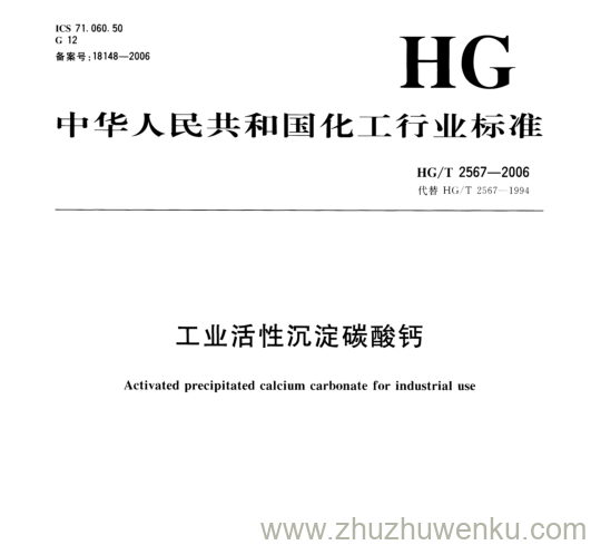 HG/T 2567-2006 pdf下载 工业活性沉淀碳酸钙。 Activated precipitated calcium carbonate for industrial use .