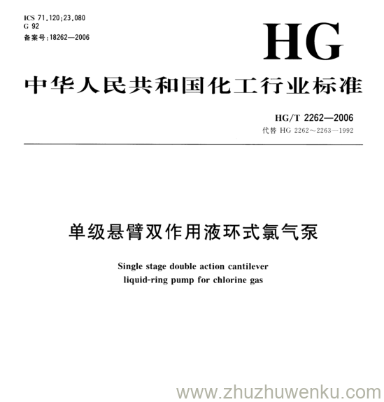 HG/T 2262-2006 pdf下载 单级悬臂双作用液环式氯气泵