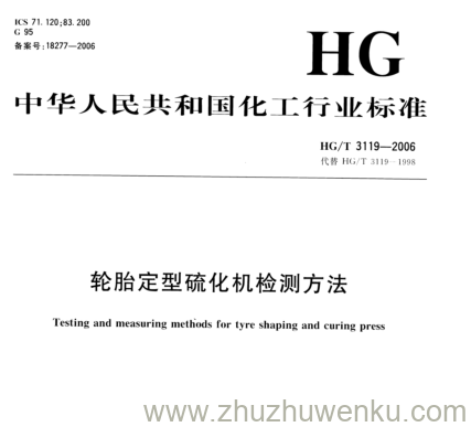HG/T 3119-2006 pdf下载 轮胎定型硫化机检测方法。 Testing and measuring methiods for tyre shaping and curing press .