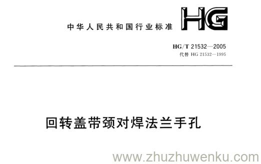 HG/T 21532-2005 pdf下载 回转盖带颈对焊法兰手孔。
