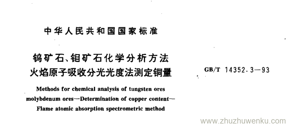 GB/T 14352.3-1993 pdf下载 钨矿石、钼矿石化学分析方法 火焰原子吸收分光光度法测定铜量