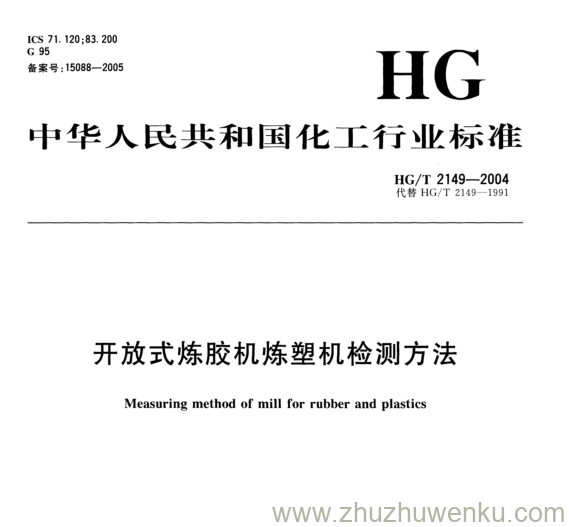 HG/T 2149-2004 pdf下载 开放式炼胶机炼塑机检测方法。 Measuring method of mill for rubber and plastics .