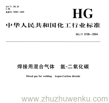 HG/T 3728-2004 pdf下载 焊接用混合气体 氩-二氧化碳。 Mixed gas for welding Argon-Carbon dioxide .