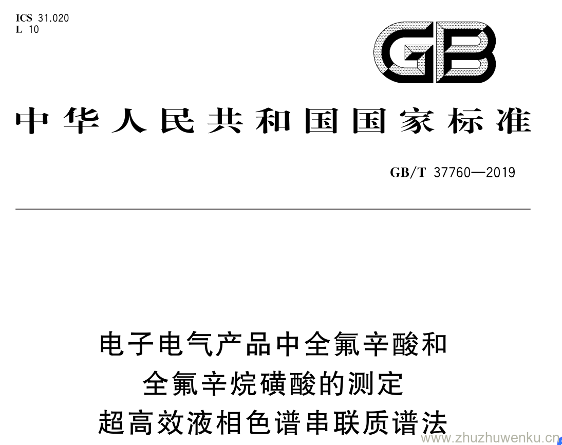 GB/T 37760-2019 pdf下载 电子电气产品中全氟辛酸和 全氟辛烷磺酸的测定 超高效液相色谱串联质谱法