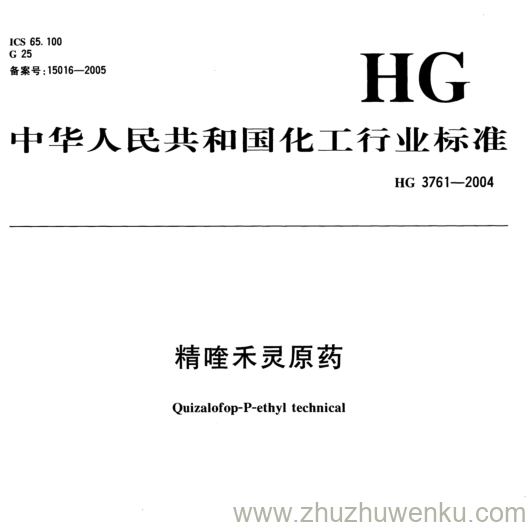 HG/T 3761-2004 pdf下载 精喹禾灵原药 。Quizalofop-P-ethyl technical .