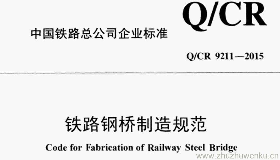 Q/CR 9211-2015 pdf下载 铁路钢桥制造规范。Code for Fabrication of Railway Steel Bridge.