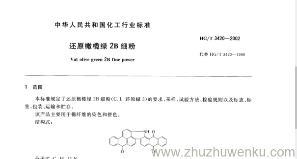 HG/T 3420-2002 pdf下载 还原橄榄绿2B细粉