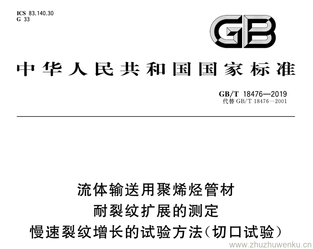 GB/T 18476-2019 pdf下载 流体输送用聚烯烃管材 耐裂纹扩展的测定 慢速裂纹增长的试验方法(切口试验)