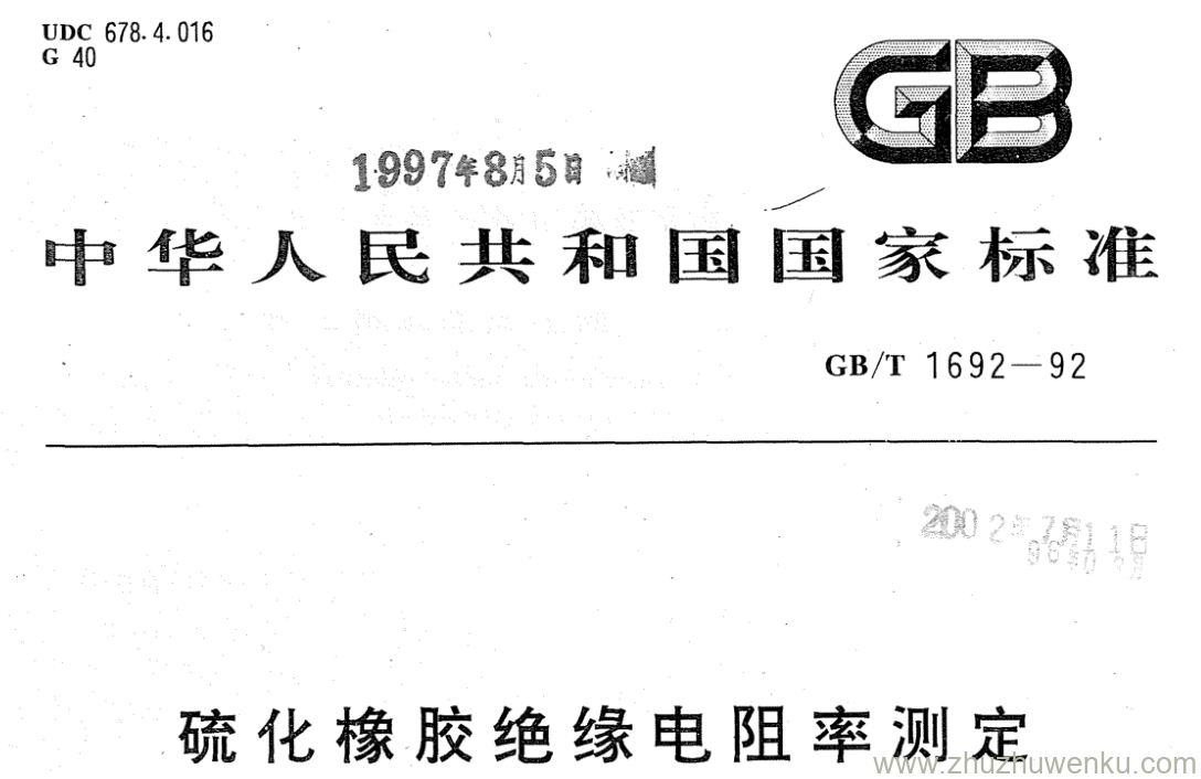 GB/T 1692-1992 pdf下载 硫化橡胶绝缘电阻率测定