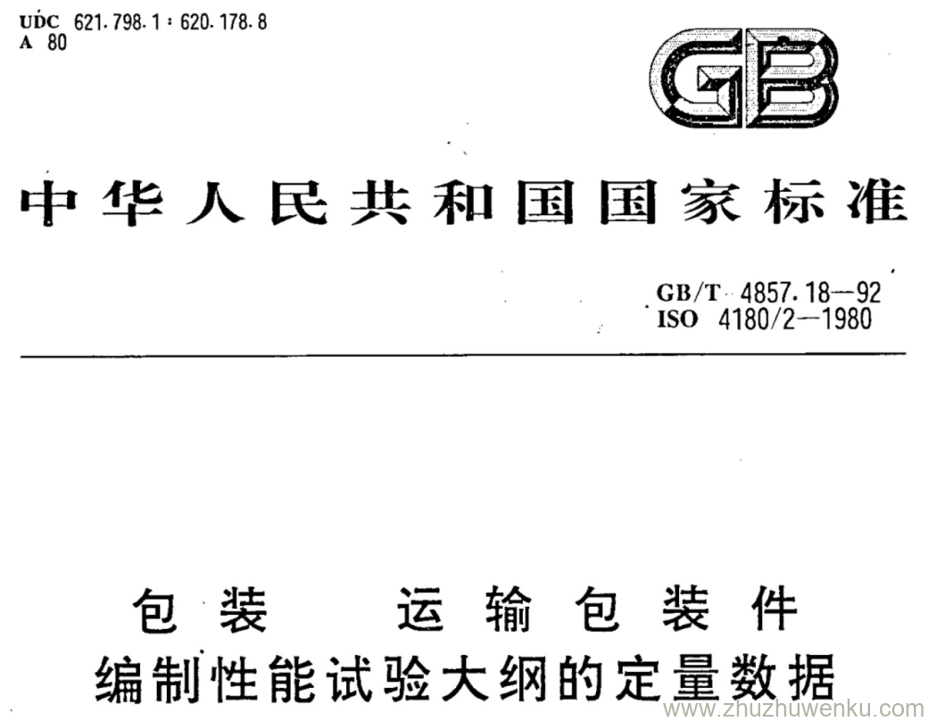 GB/T 4857.18-1992 pdf下载 包 装 运 输 包 装 件 编制性能试验大纲的定量数据