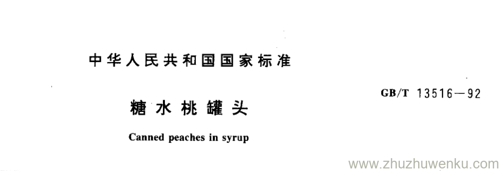 GB/T 13516-1992 pdf下载 糖水桃罐头