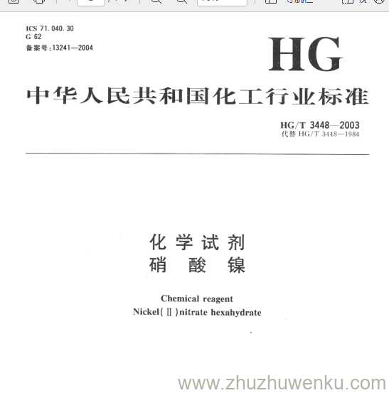 HG/T 3448-2003 pdf下载 化学试剂 硝 酸 镍。 Chemical reagent Nickel( I )nitrate hexahydrate .