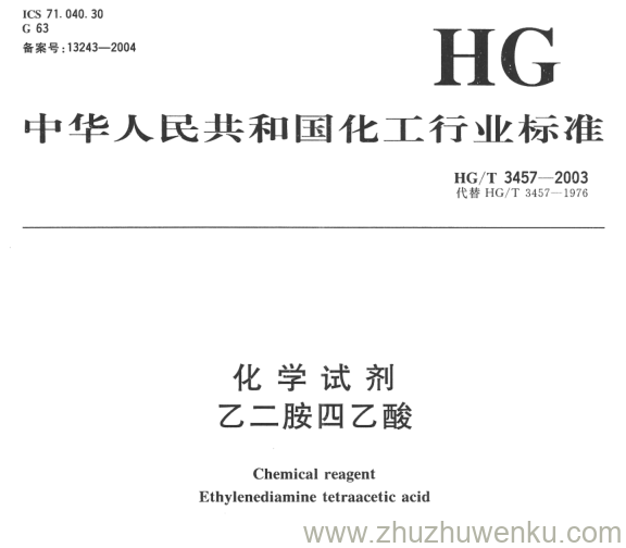 HG/T 3457-2003 pdf下载 化学试剂 乙二胺四乙酸 。Chemical reagent Ethylenediamine tetraacetic acid .