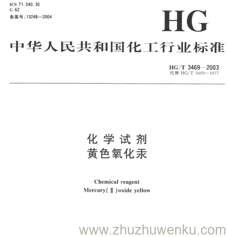 HG/T 3469-2003 pdf下载 化学试剂 黄色氧化汞。 Chemical reagent Mercury( I )oxide yellow .