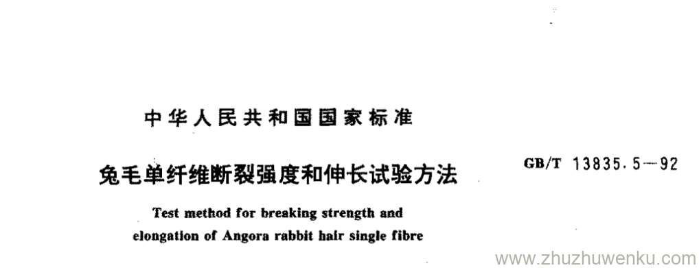 GB/T 13535.5-1992 pdf下载 兔毛单纤维断裂强度和伸长试验方法