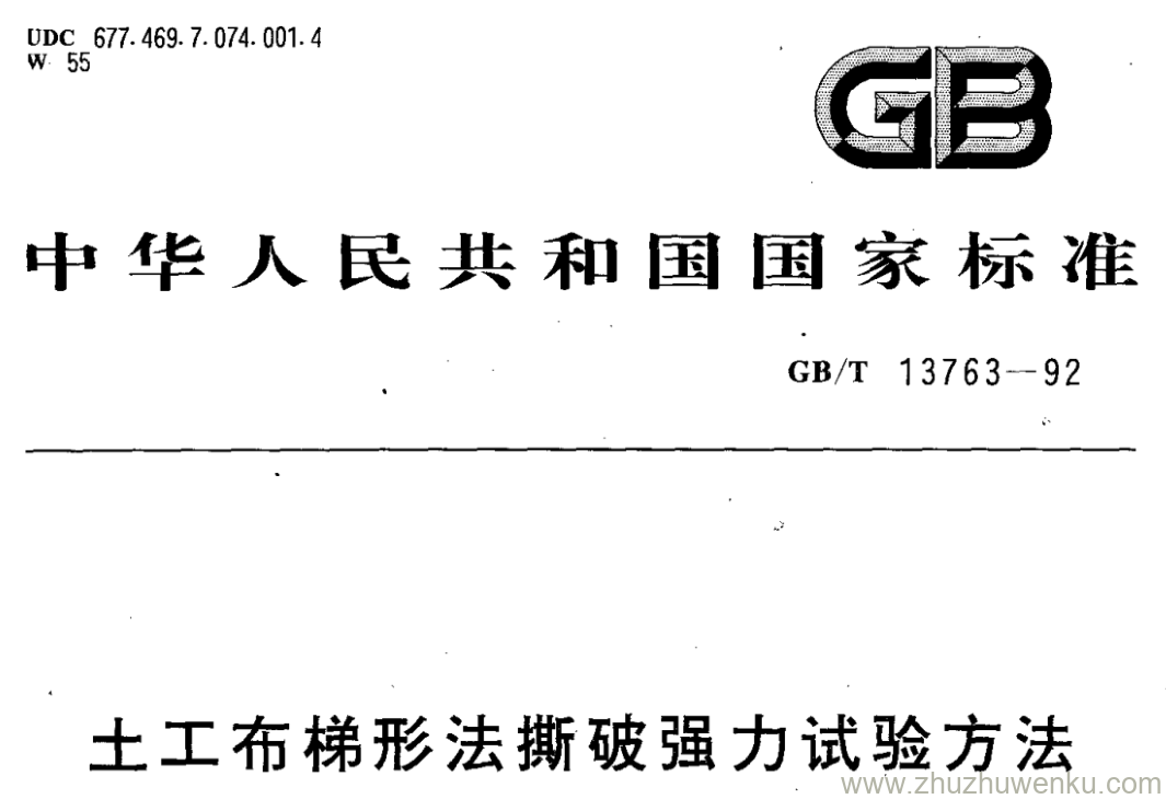 GB/T 13763-1992 pdf下载 土工布梯形法撕破强力试验方法