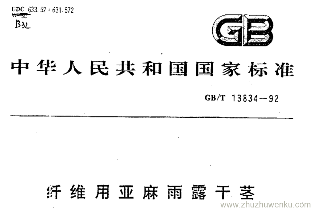 GB/T 13834-1992 pdf下载 纤维用亚麻雨露干茎