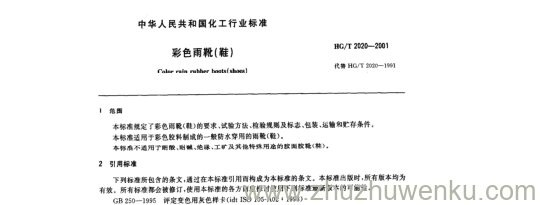 HG/T 2020-2001 pdf下载 彩色雨靴(鞋)。 Color rain robber boots shoes) .