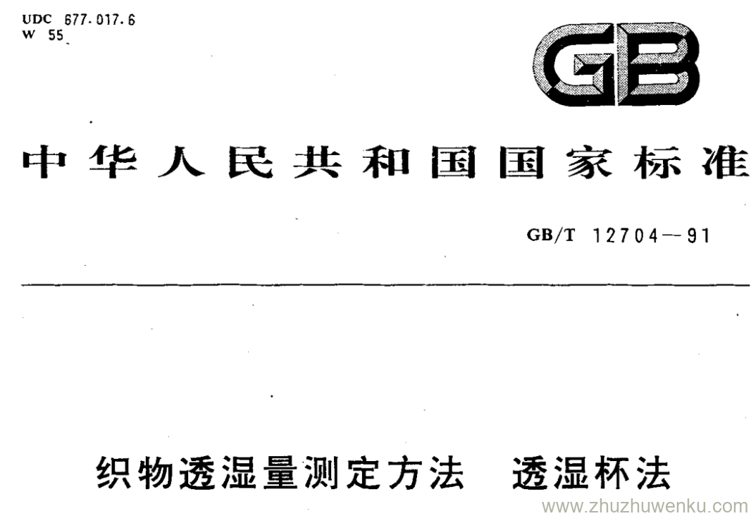 GB/T 12704-1991 pdf下载 织物透湿量测定方法透湿杯法