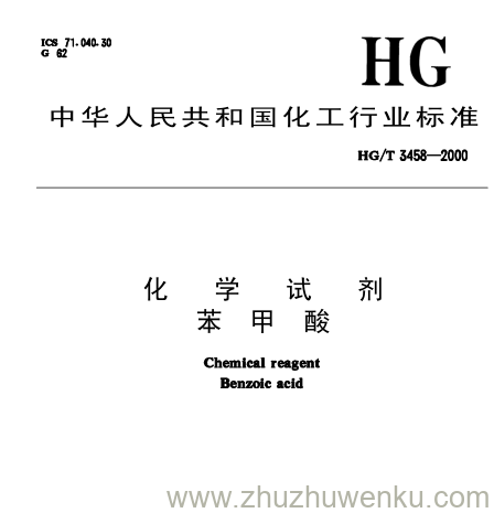 HG/T 3458-2000 pdf下载 化 学 试 剂 苯 甲 酸 。Chemical reagent Benzolc acid .