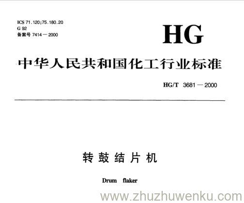 HG/T 3681-2000 pdf下载 转鼓结片机 。Drum faker .