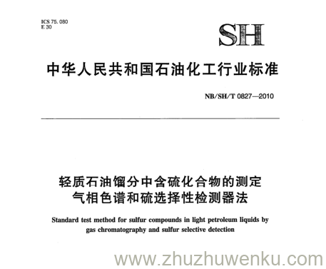 NB/SH/T 0827-2010 pdf下载 轻质石油馏分中含硫化合物的测定 气相色谱和硫选择性检测器法