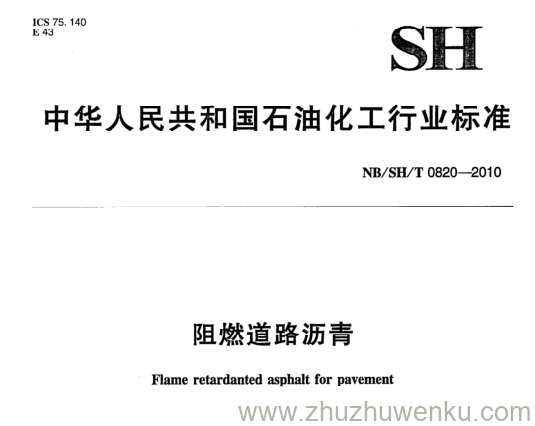 NB/SH/T 0820-2010 pdf下载 阻燃道路沥青