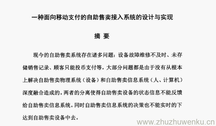论文题目:一种面向移动支付的自助售卖接入系统的设计与实现