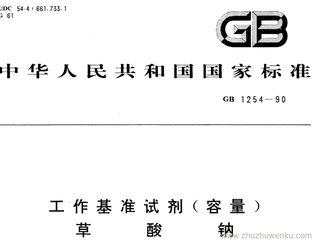 GB/T 1254-1990 pdf下载 工作基准试剂(容量) 草 酸 钠