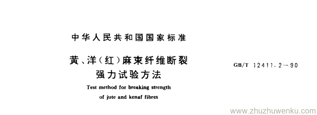 GB/T 12411.2-1990 pdf下载 黄、洋(红)麻束纤维断裂 强力试验方法