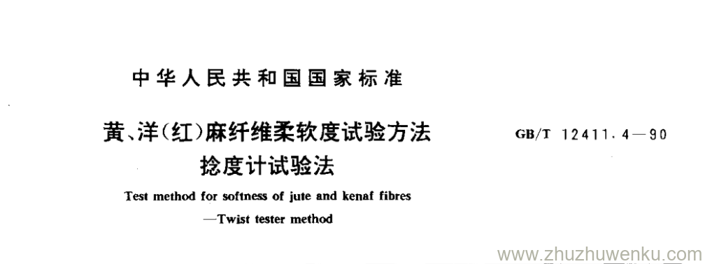 GB/T 12411.4-1990 pdf下载 黄、洋(红)麻纤维柔软度试验方法 捻度计试验法