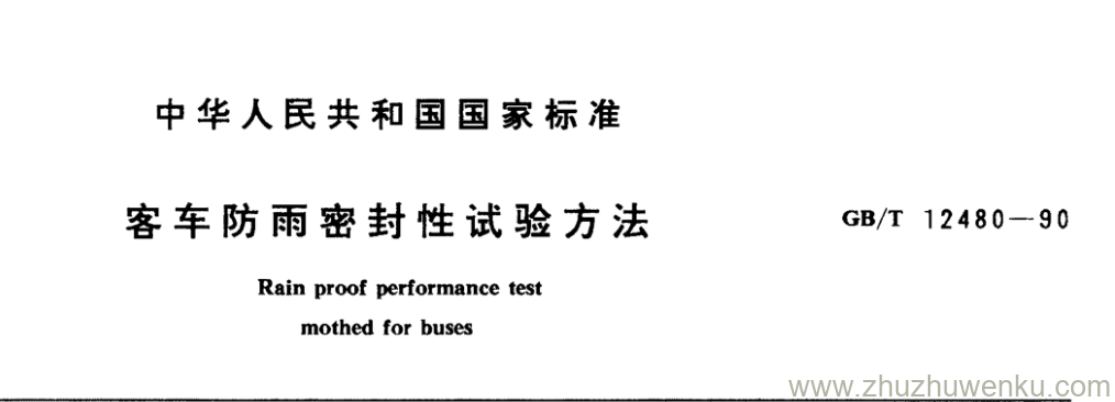 GB/T 12480-1990 pdf下载 客车防雨密封性试验方法