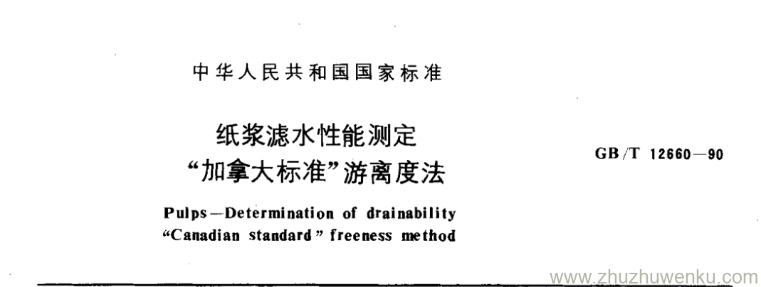 GB/T 12660-1990 pdf下载 纸浆滤水性能测定 “加拿大标准”游离度法