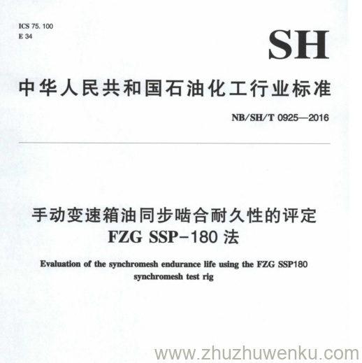 NB/SH/T 0925-2016 pdf下载 手动变速箱油同步啮合耐久性的评定 FZG SSP-180法 。Evaluation of the synchromesh endurance life using the FZG SSP180 synchromesh test rig .
