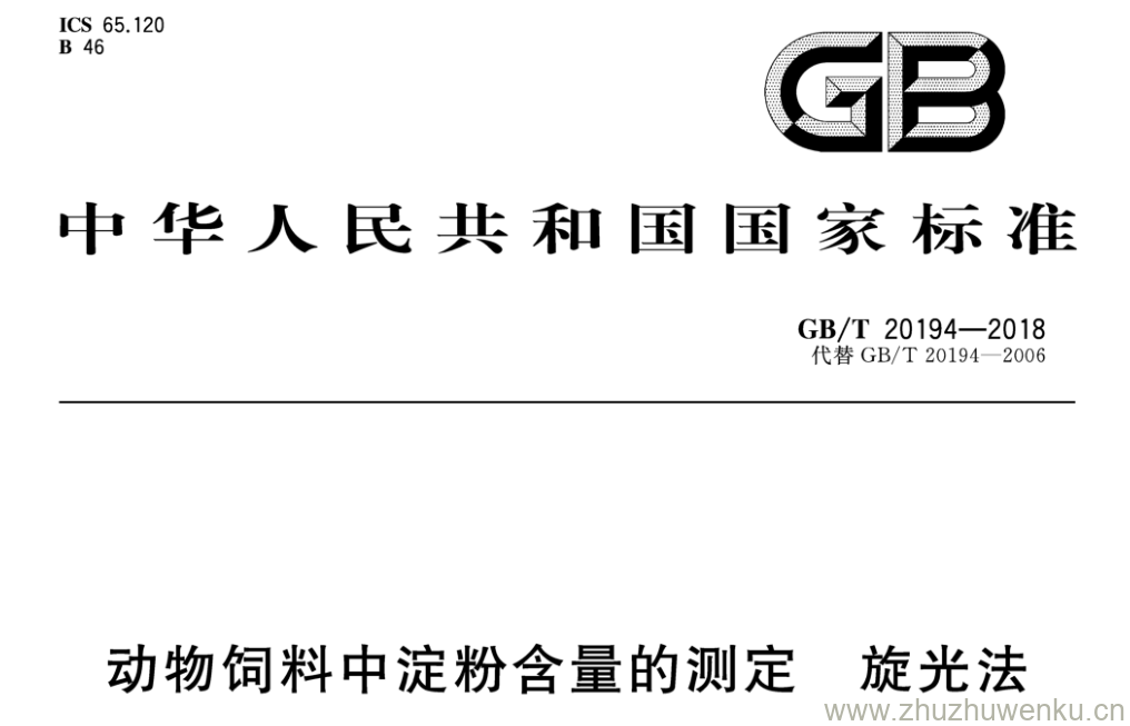 GB/T 20194-2018 pdf下载 动物饲料中淀粉含量的测定 旋光法