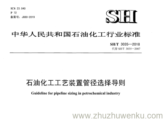 SH/T 3035-2018 pdf下载 石 油 化 工 工 艺 装 置 管 径 选 择 导 则。 Guideline for pipeline sizing in petrochemical industry.