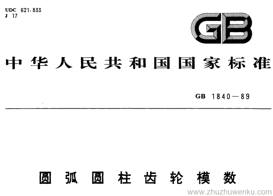 GB/T 1840-1989 pdf下载 圆弧圆柱齿轮模数