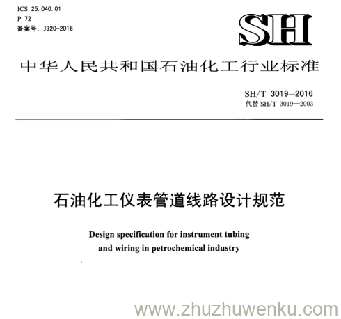 SH/T 3019-2016 pdf下载 石油化工仪表管道线路设计规范。 Design specification for instrument tubing and wiring in petrochemical industry.