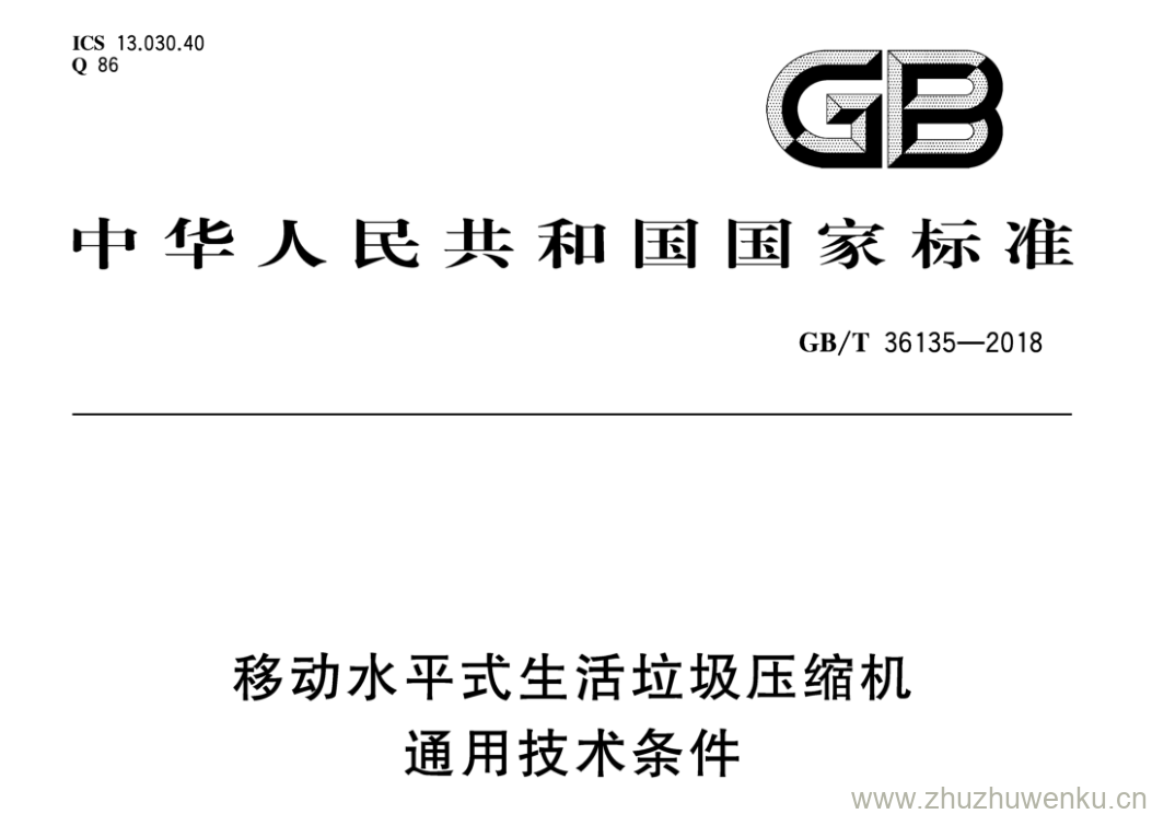 GB/T 36135-2018 pdf下载 移动水平式生活垃圾压缩机 通用技术条件