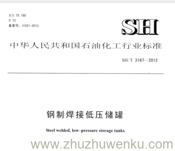 SH/T 3167-2012 pdf下载 钢制焊接低压储罐 。Steel welded, low-pressure storage tanks .
