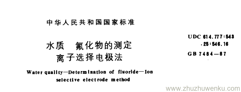 GB/T 7484-1987 pdf下载 水质氟化物的测定 离子选择电极法