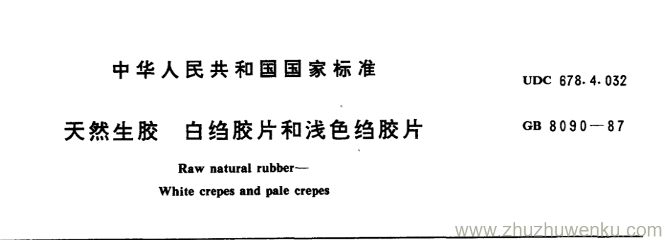 GB/T 8090-1987 pdf下载 天然生胶白绉胶片和浅色绉胶片