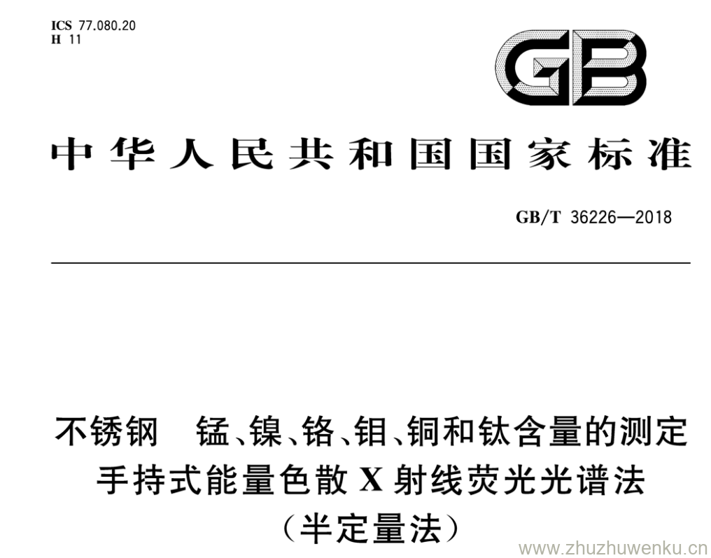 GB/T 36226-2018 pdf下载 不锈钢锰、镍、铬、钼、铜和钛 含量的测定 手持式能量色散X射线荧光光谱法 (半定量法)