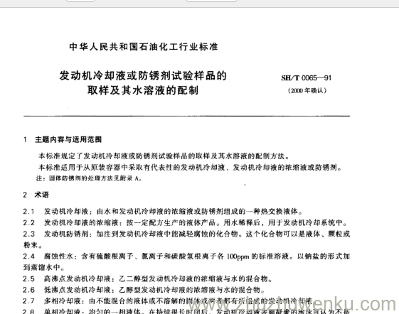 SH/T 0065-1999 pdf下载 发动机冷却液或防锈剂试验样品的 取样及其水溶液的配制 。