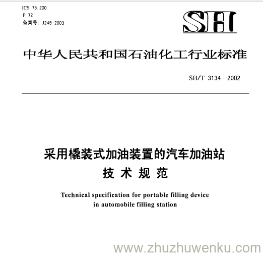 SH/T 3134-2002 pdf下载 采用橇装式加油装置的汽车加油站 技术规范。 Technical specification for portable filling device in automobile flling station .