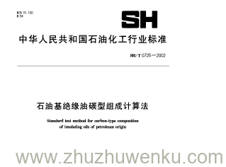 SH/T 0725-2002 pdf下载 石油基绝缘油碳型组成计算法。 Standard test method for carbon-type composition of insulating oils of petroleun origin.