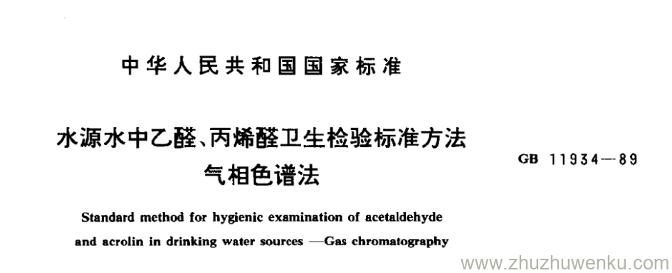 GB/T 11934-1989 pdf下载 水源水中乙醛、丙烯醛卫生检验标准方法 气相色谱法