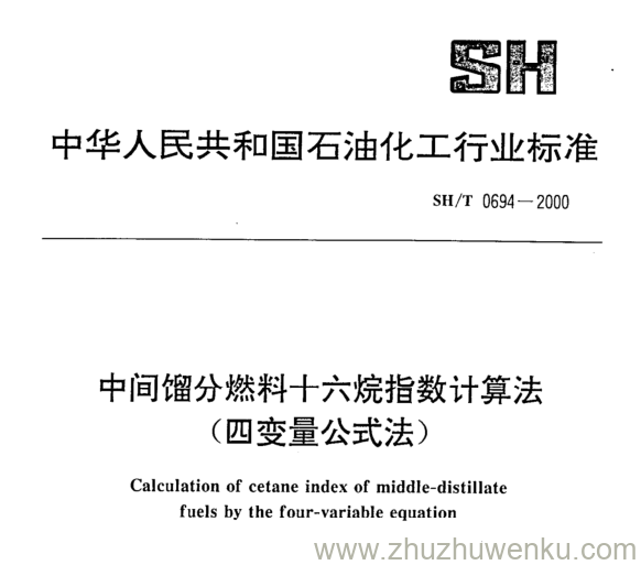 SH/T 0694-2000 pdf下载 中间馏分燃料十六烷指数计算法 (四变量公式法)。 Calculation of cetane index of middle- distillate fuels by the four- variable equation .