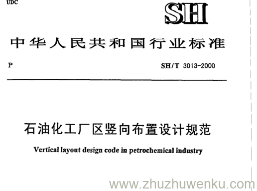 SH/T 3013-2000 pdf下载 石油化工厂区竖向布置设计规范。 Vertial layout desiga code in petrochemical industry .