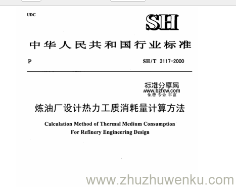 SH/T 3117-2000 pdf下载 炼油厂设计热力工质消耗量计算方法。 Caleulation Method of Thermal Medium Consumption For Refinery Engineering Design .